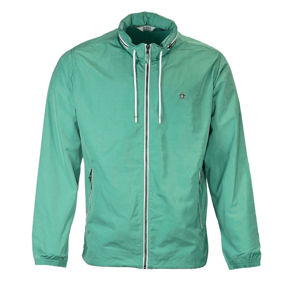 Look your best while you combat the elements in this Original Penguin hooded Ratner jacket. The men’s jacket is made from durable plain weave fabric, with a water resistant hi-density surface to help protect against wet and windy weather. It's designed with a slim fit for sleek modern style. A versatile addition to any guy’s wardrobe, it has a packable hood that's easy to store neatly in your luggage for all your adventures.