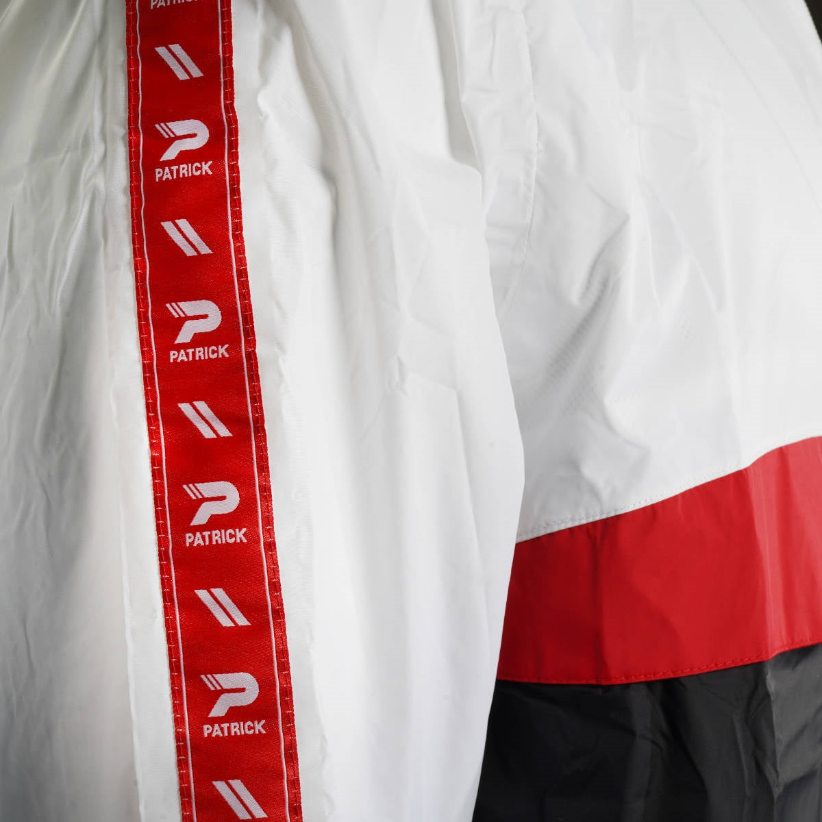 The Carolus Windbreaker. This versatile, easy to wear hooded cagoule is the perfect addition to your outerwear collection. Featuring an elasticated hem and cuffs for the perfect fit and cut and sew panels for a touch of style, the cagoule is finished with retro taping to the arms and the Patrick high density logo print.