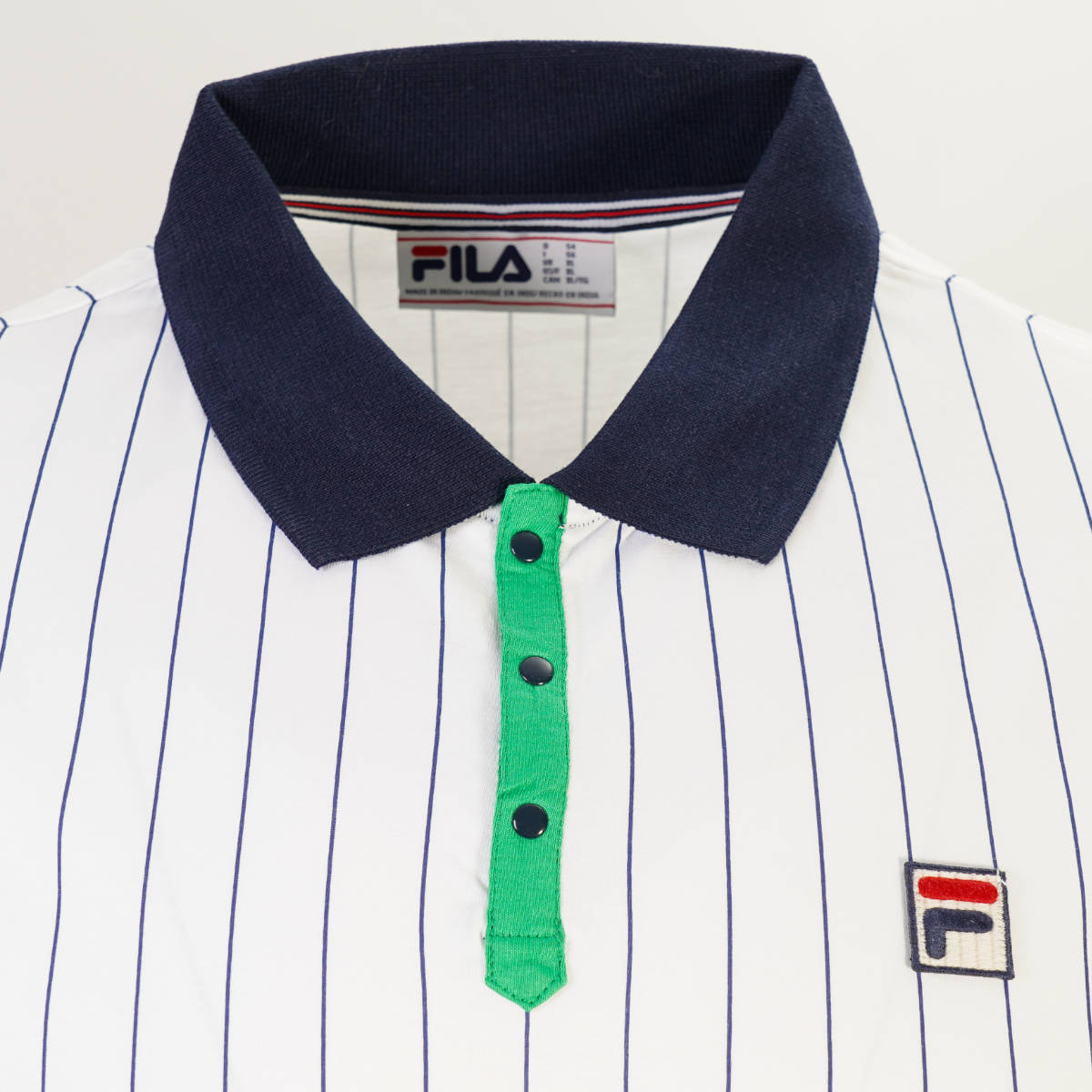 SKU:Fila BB1 Classic Vint Stripe Polo 102 White / Fila Navy/ Green L