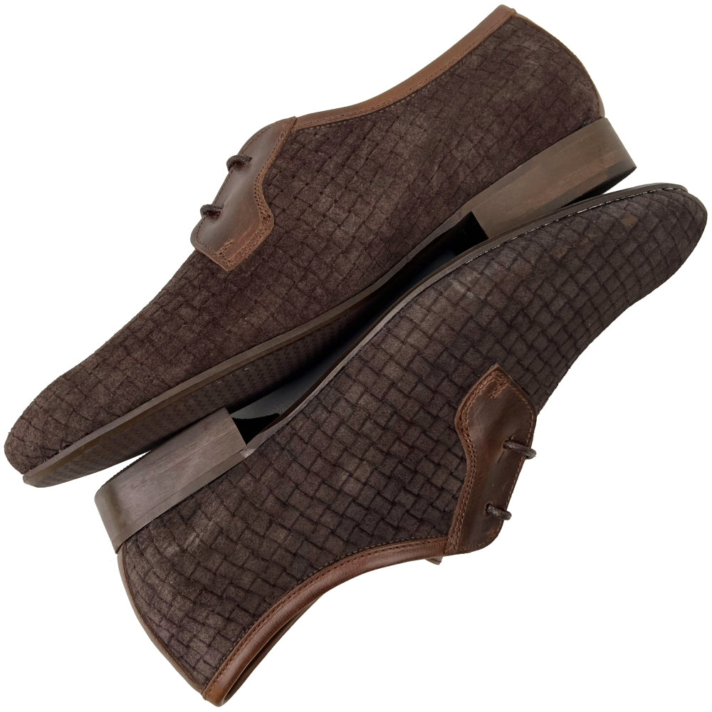 This is the 'Weaver' in Brown - A handmade Basketweave embossed suede Lace-Up shoe. A smart-casual shoe that even the Italians themselves would be proud of; definite continental mod vibes with this style.