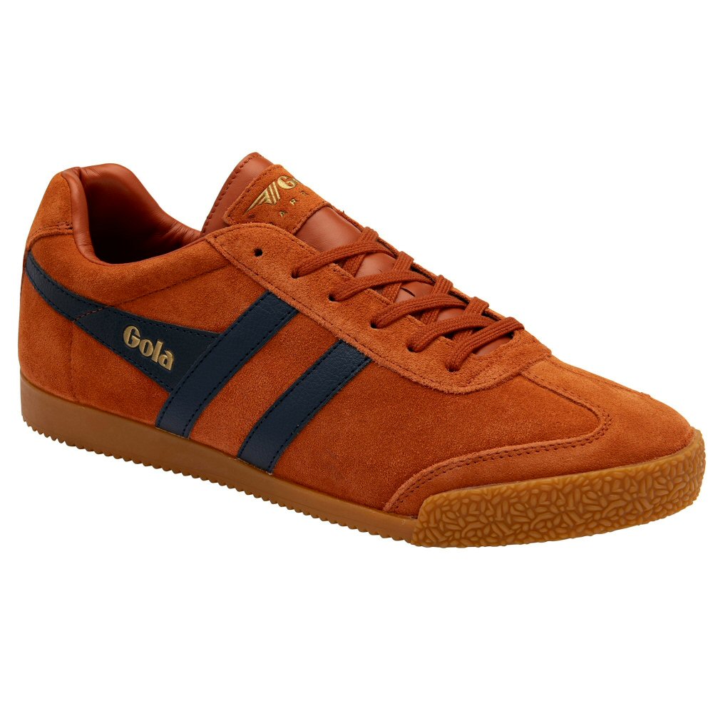 Gola Harrier Classic Twin Stripe Suede Trainer Moody Orange / Navy