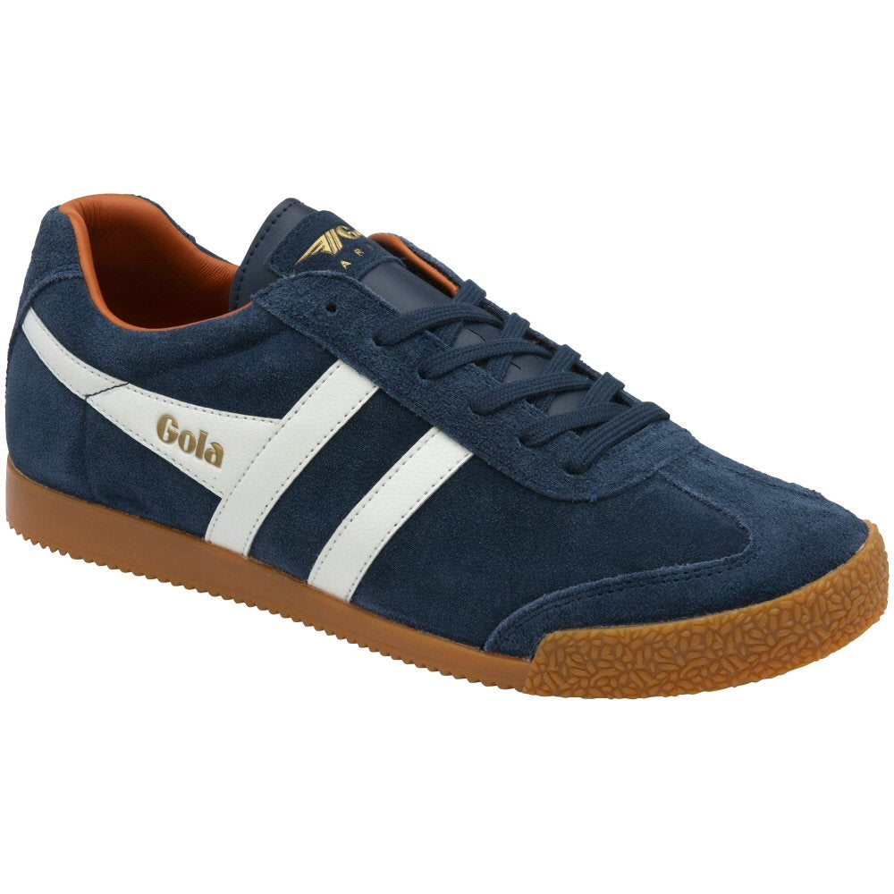 Gola Harrier Classic Twin Stripe Suede Trainer Navy / Off White / Orange