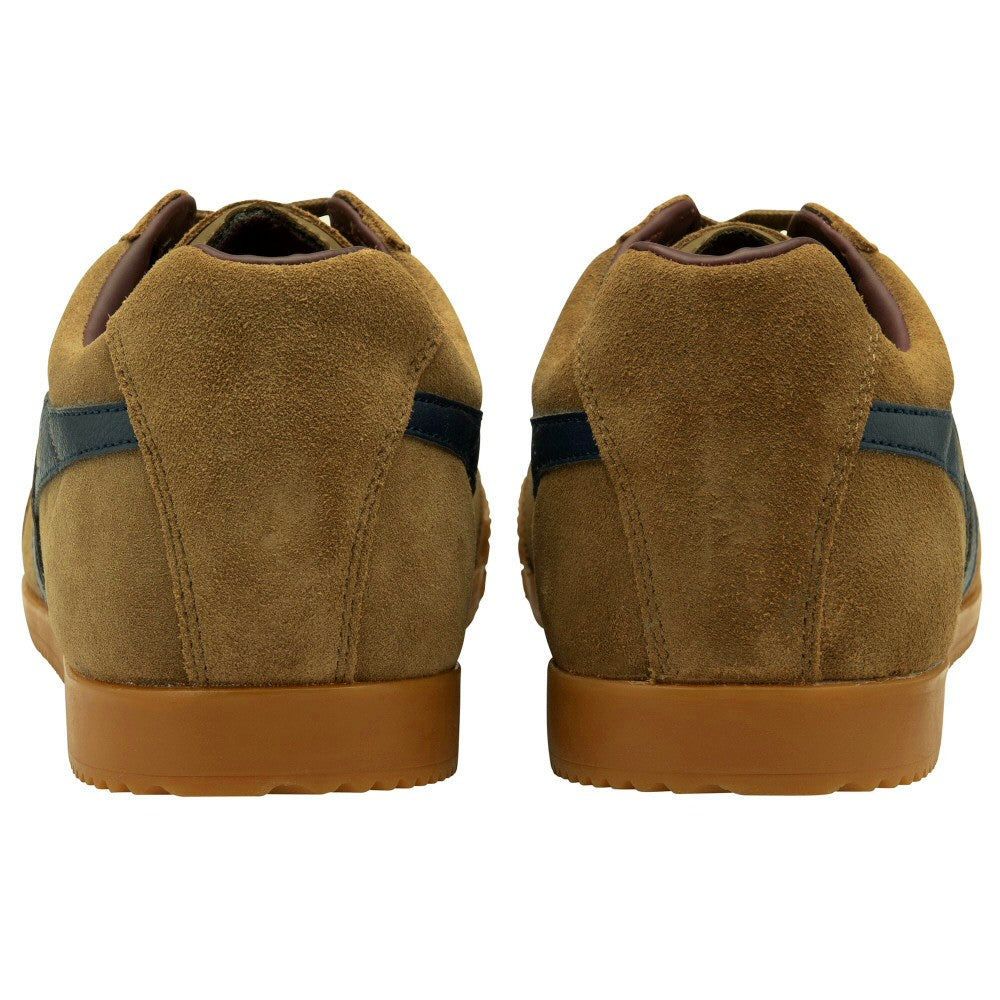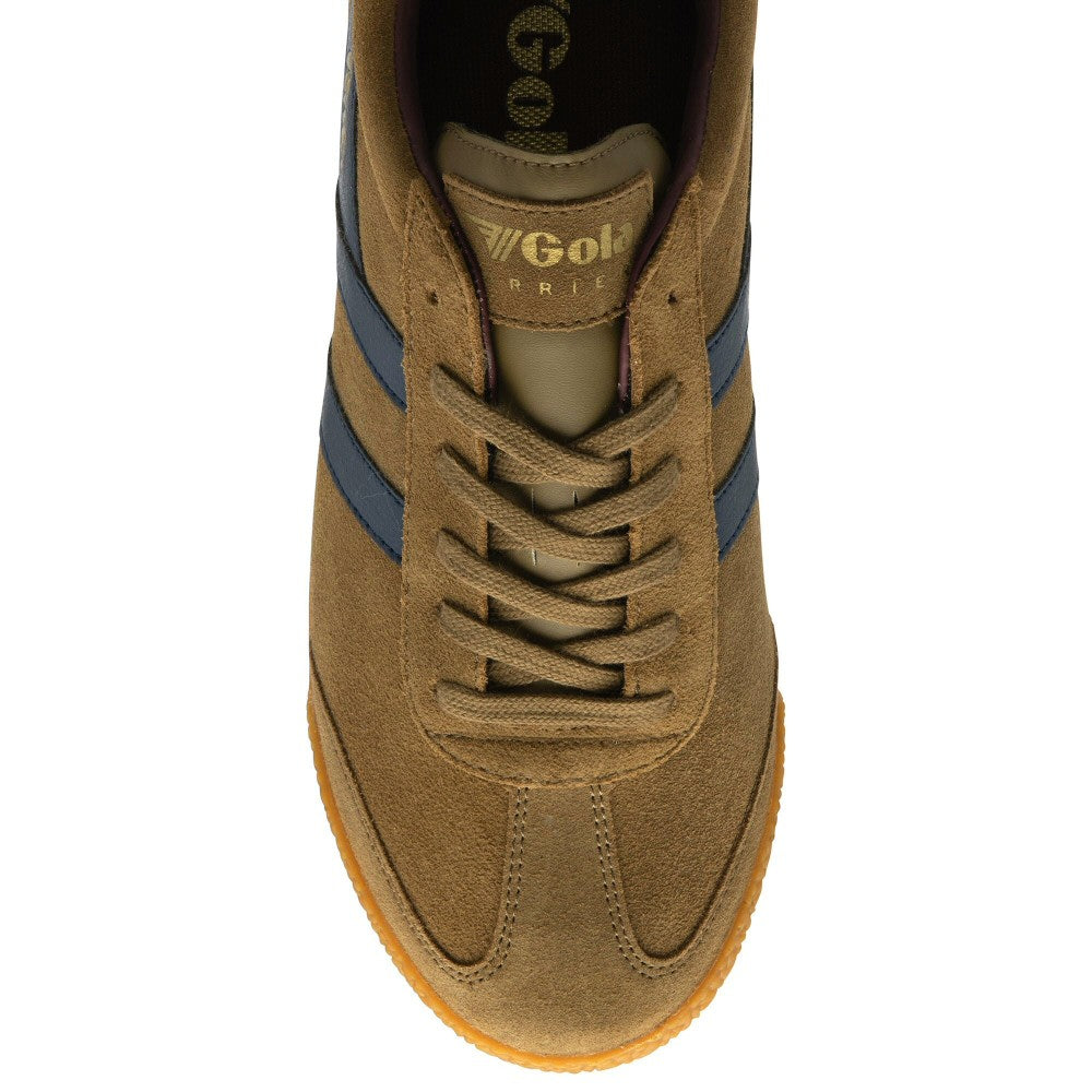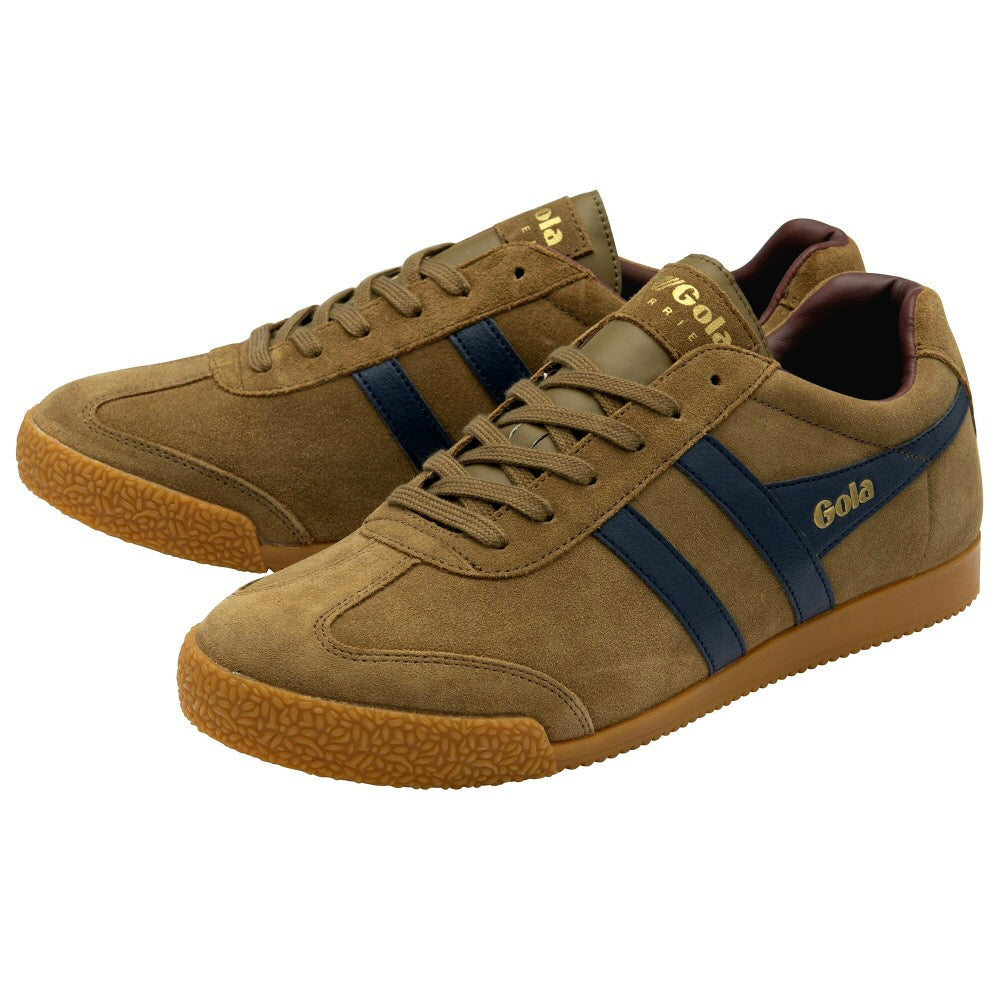 Gola Harrier Classic Twin Stripe Suede Trainer Tobacco / Navy