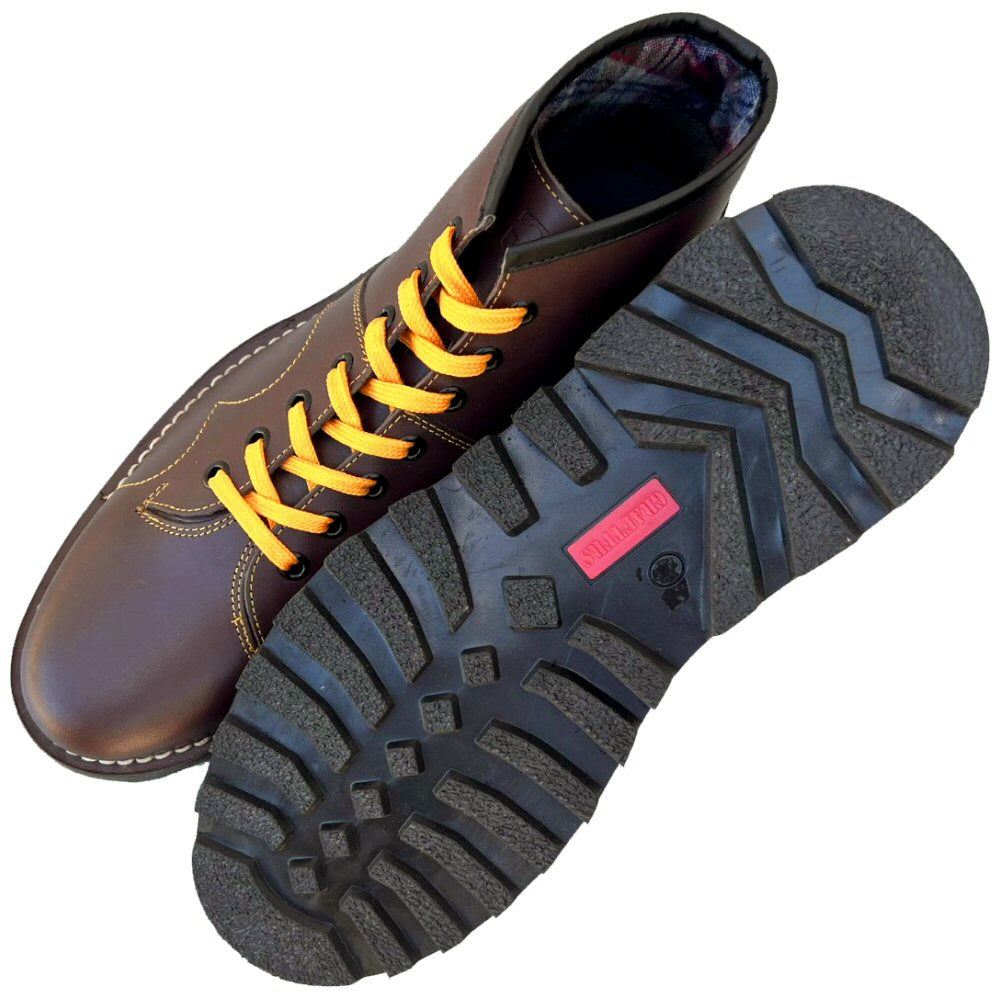 Iconic upper stitching, 7 eye-lets, boot tread sole.