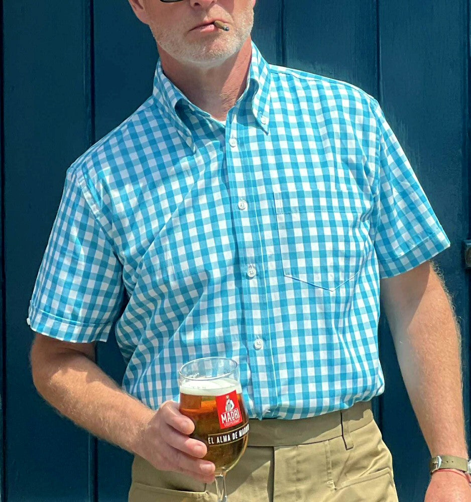 Adaptor Clothing Gingham Short Sleeve Button Down Shirt Aqua