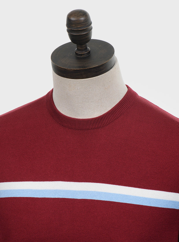 Art Gallery Fine Gauge Knit Horizontal Stripe Crew Neck Wine