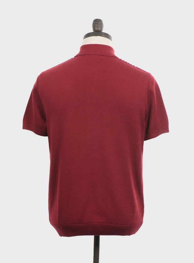Art Gallery Fine Gauge Knit Multi Stripe Polo Wine