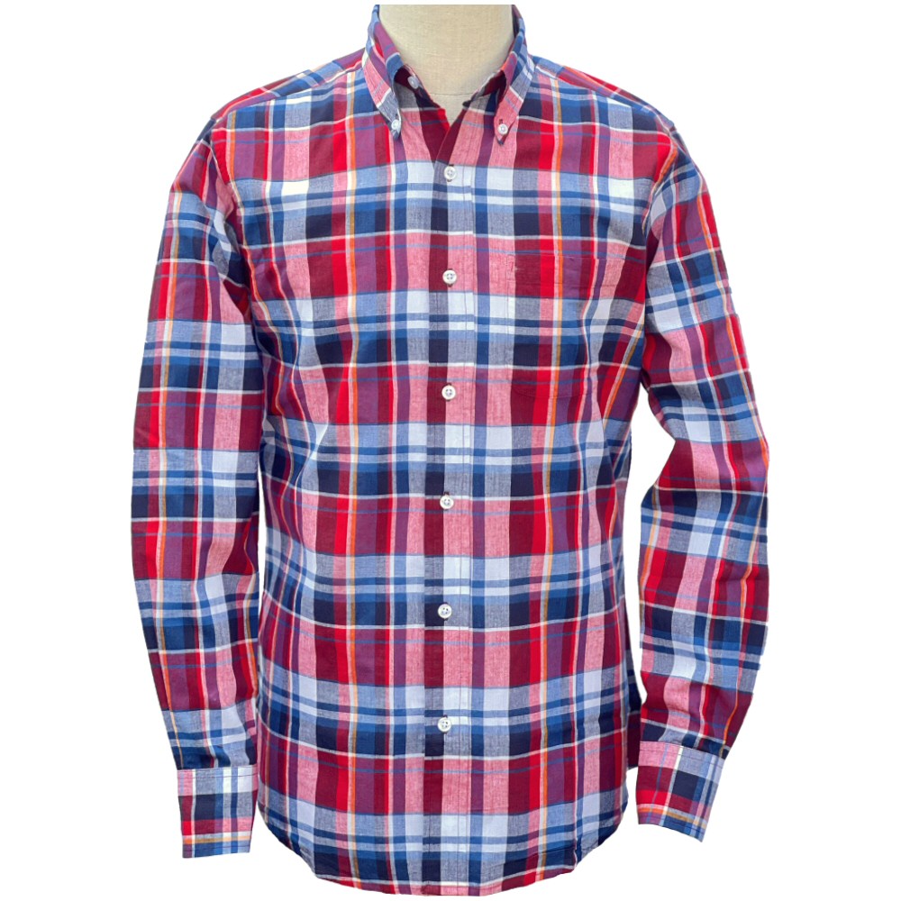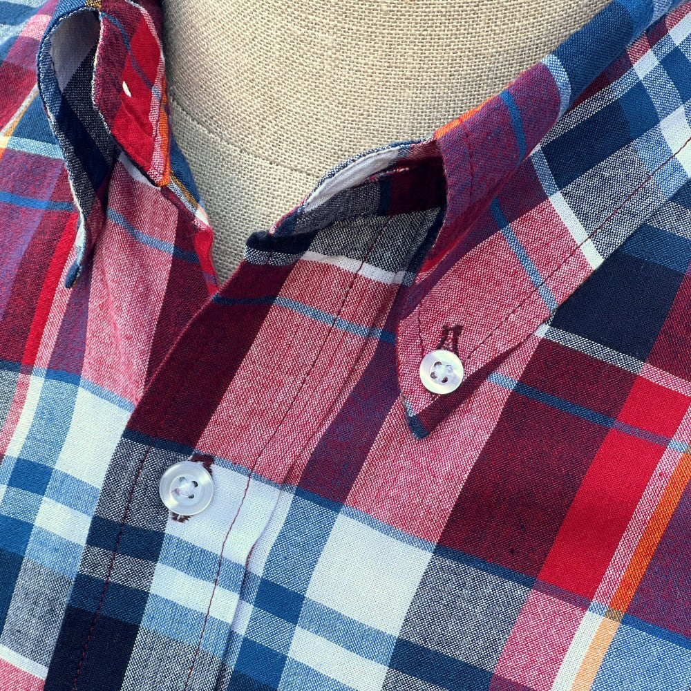 Authentic Classic Madras Check Button Down Shirt Red Blue