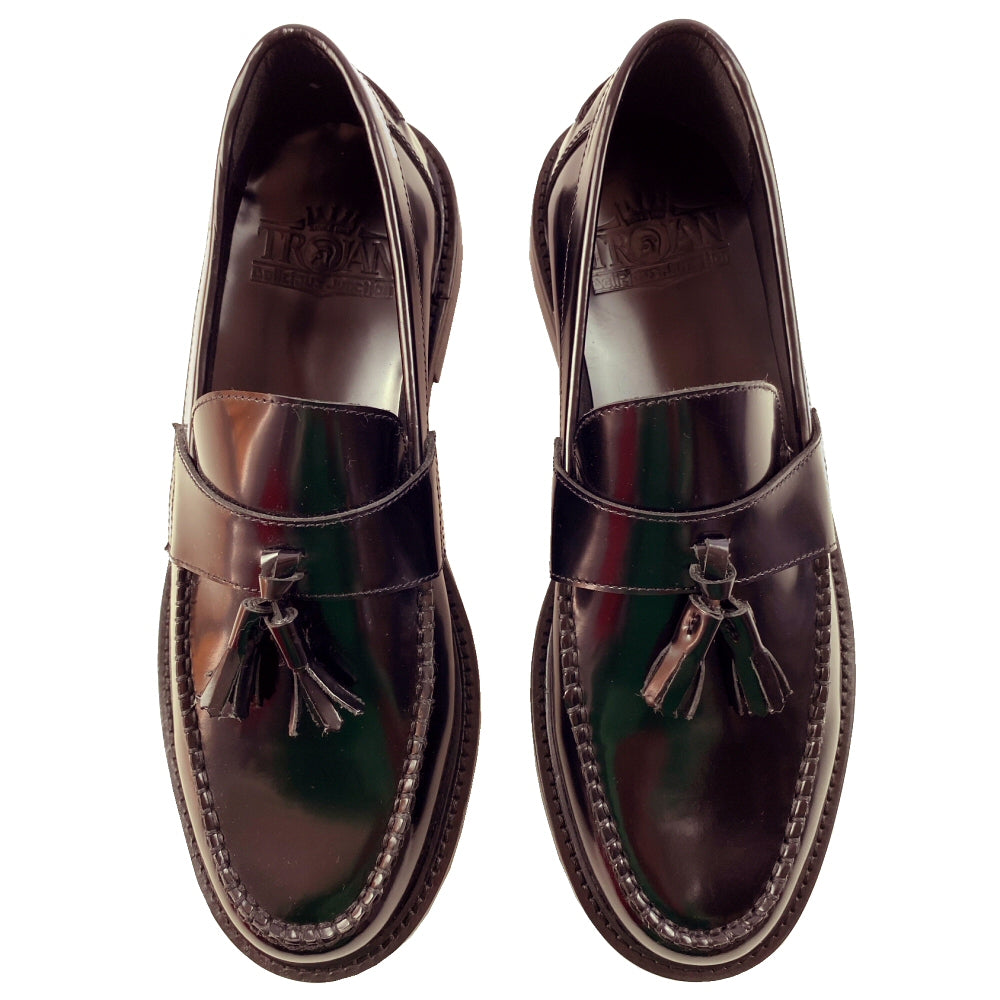Our new collaboration with Delicious Junction brings you the ‘Duke’ tassel loafer. It’s all leather, with tassels, but no fringe, giving it a cleaner look than many loafers. It has all the detailing you’d expect, with the addition of a subtle embossed Trojan logo on the heel.
