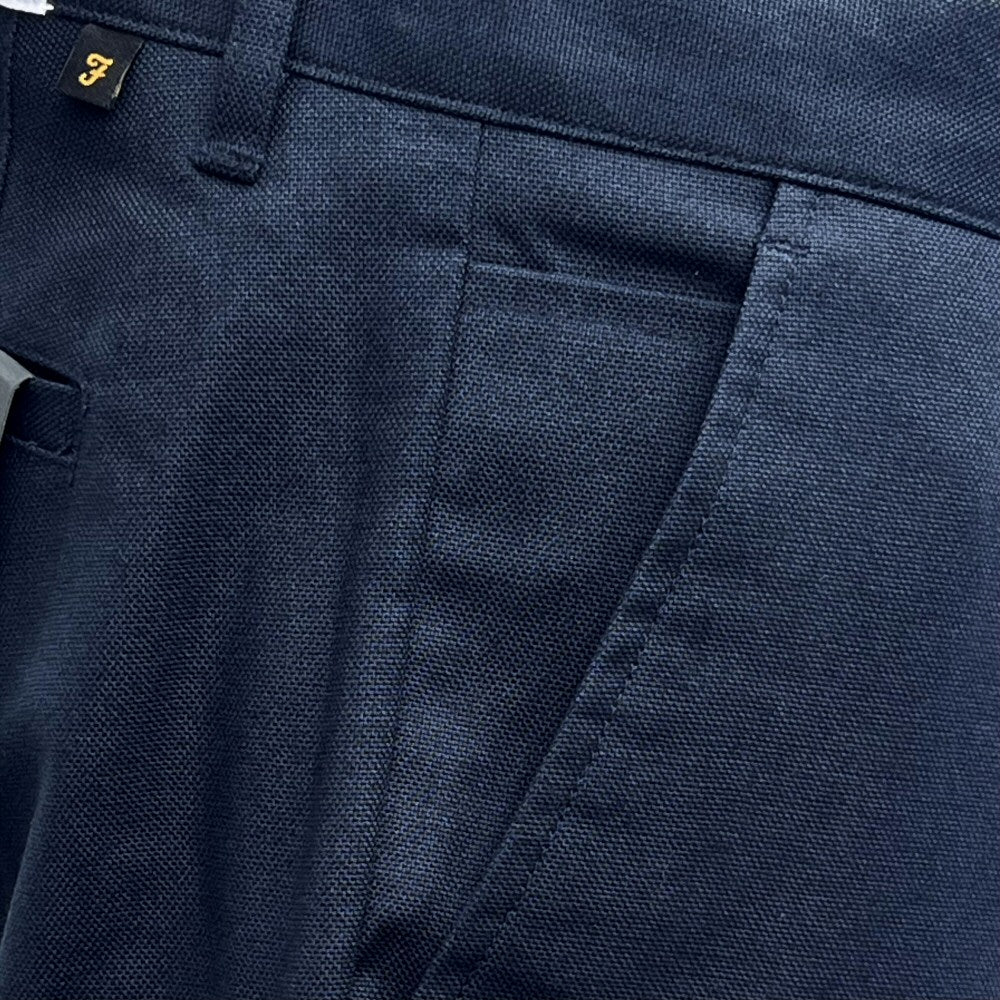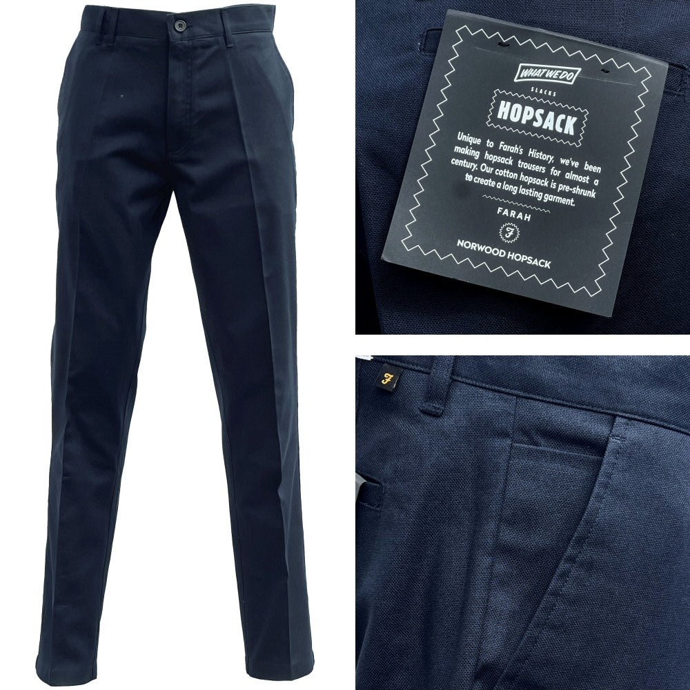 Farah Hopsack Cotton Straight Fit Trousers Navy