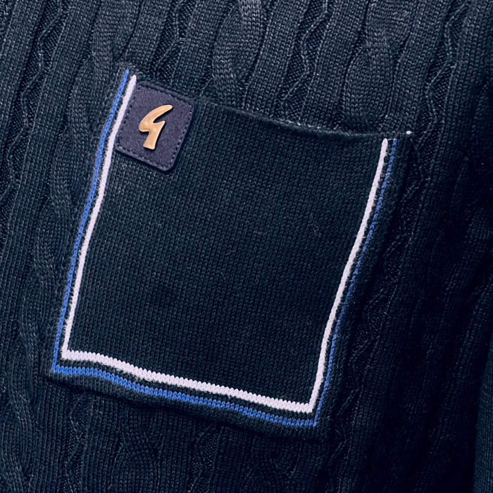 Gabicci Vintage Cable Knit Zip Through Tipped Cardi Navy