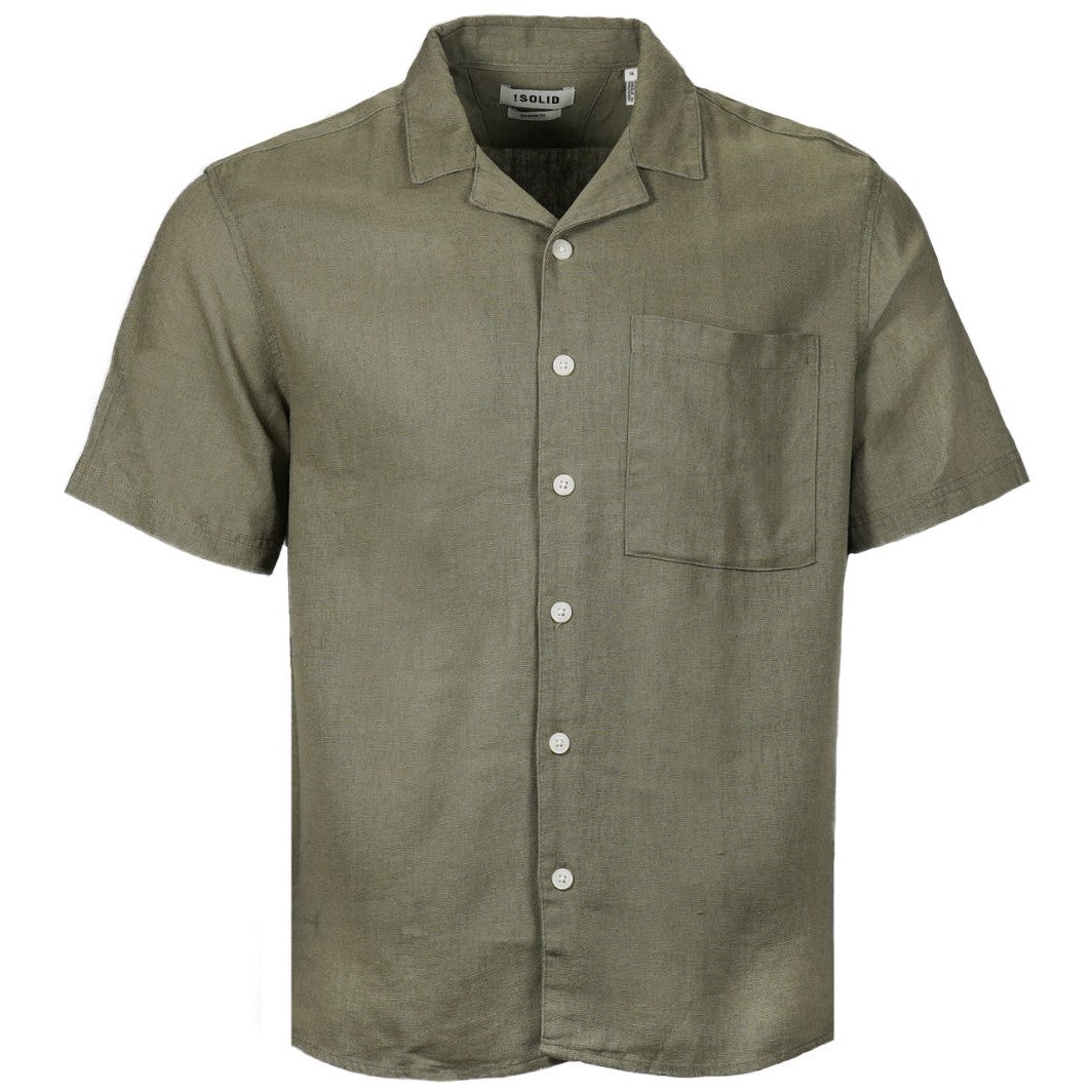 Solid Revere Camp Collar Linen Viscose Mix Shirt Light Olive