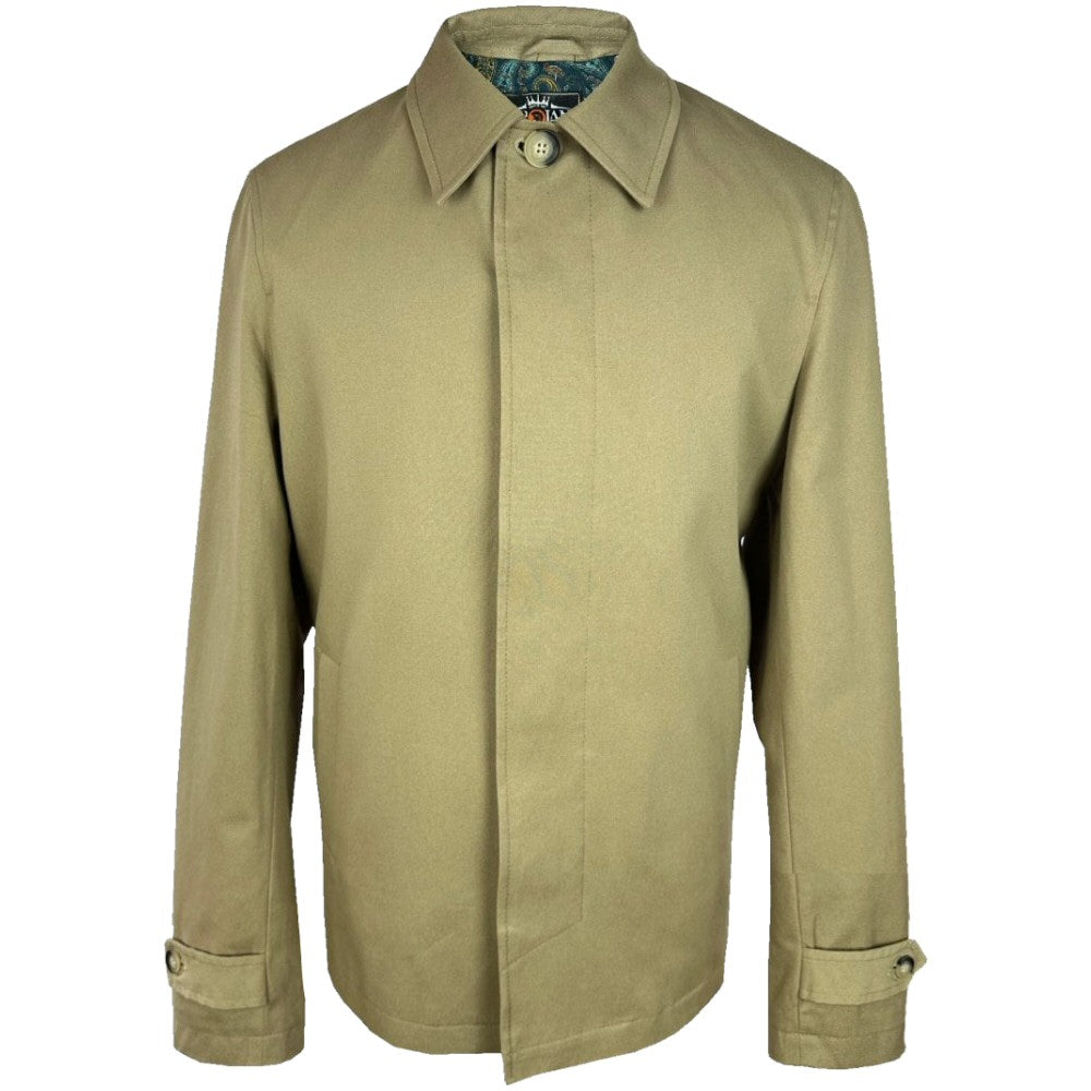 Trojan Fly Front Paisley Trimmed Cropped Car Coat Stone