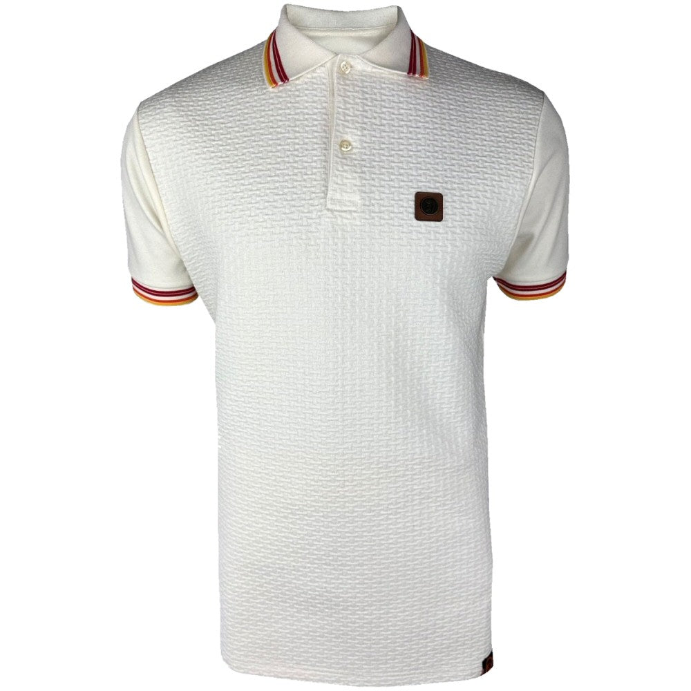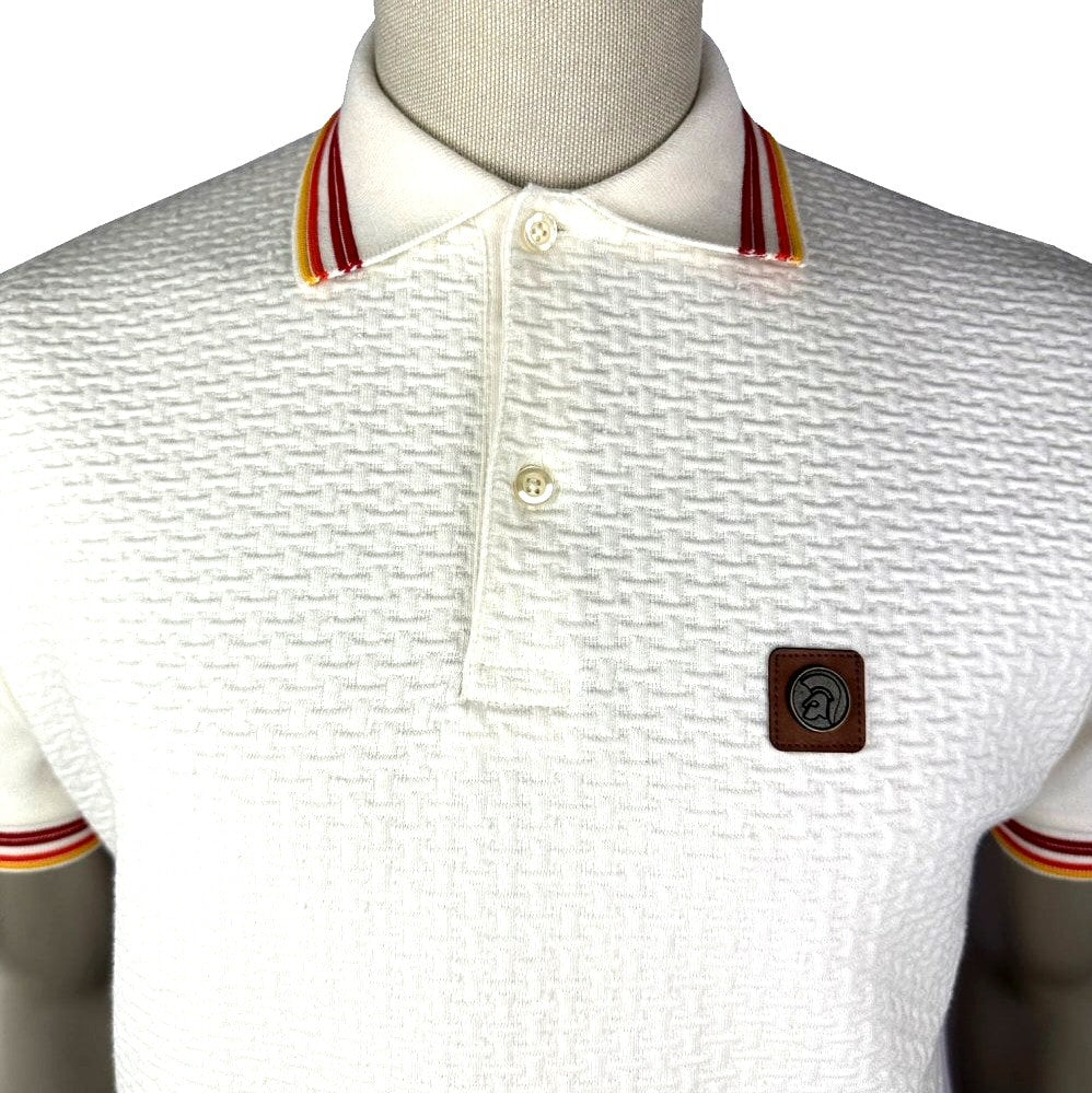 Trojan Records Basket Knit Quad Tipped Polo Ecru
