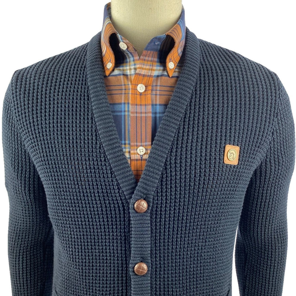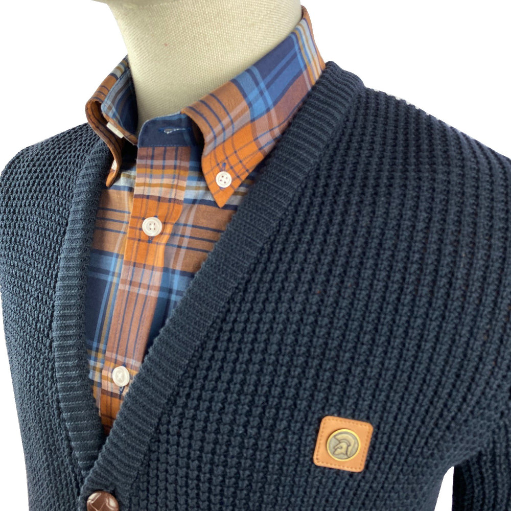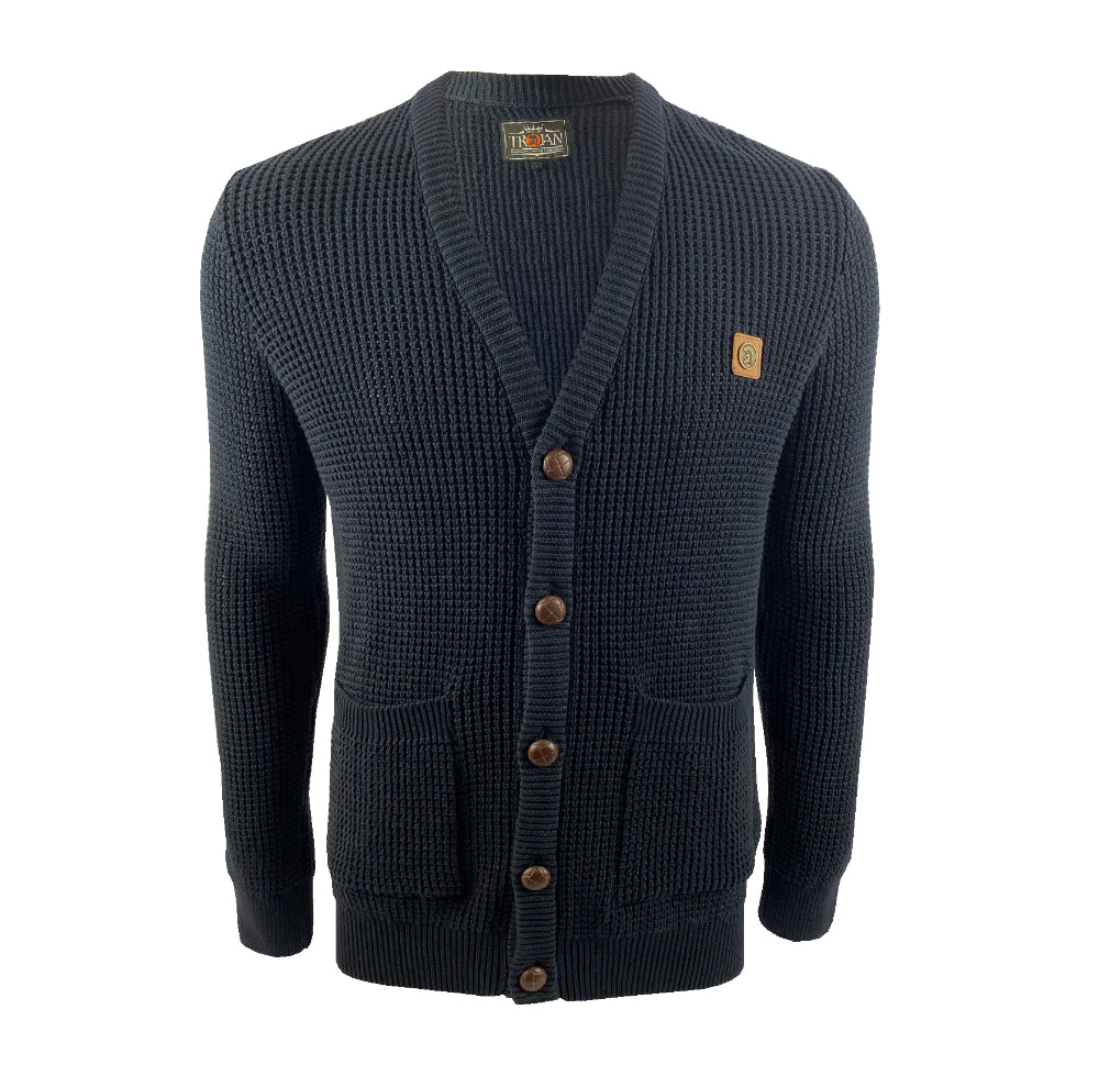 Trojan Records Waffle Knit Football Buttons Cardigan Navy