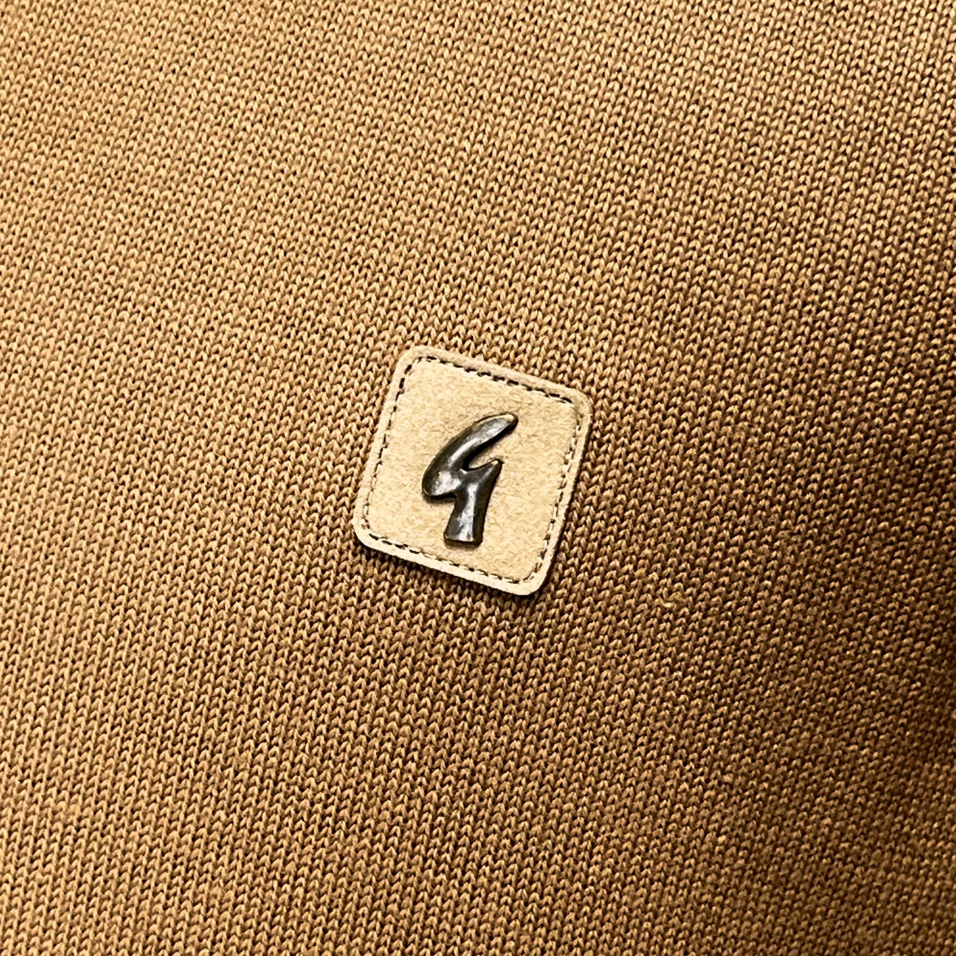 - "G" badge in metal on leather