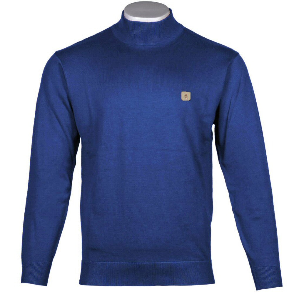 Gabicci Vintage Plain Knit Turtle Neck Pullover Mid Blue