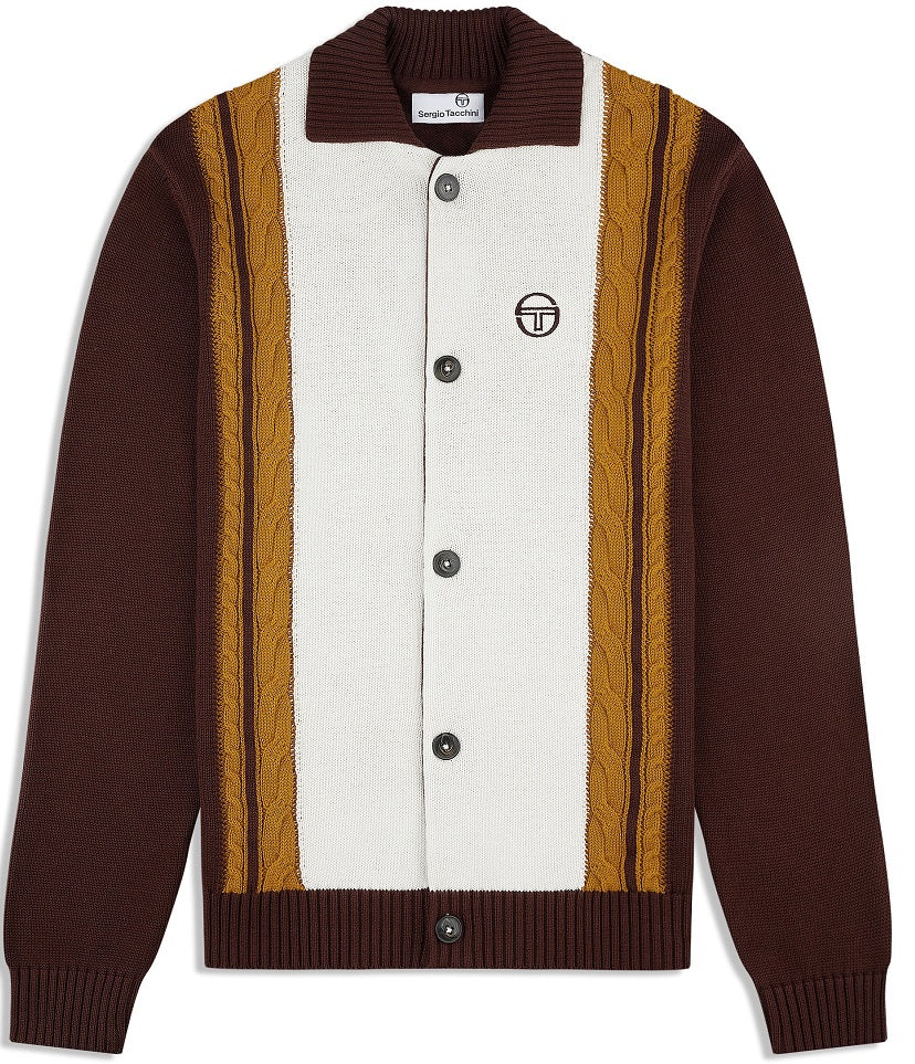 Sergio Tacchini Bruni Cable Knit Cardigan Ecru / Brown