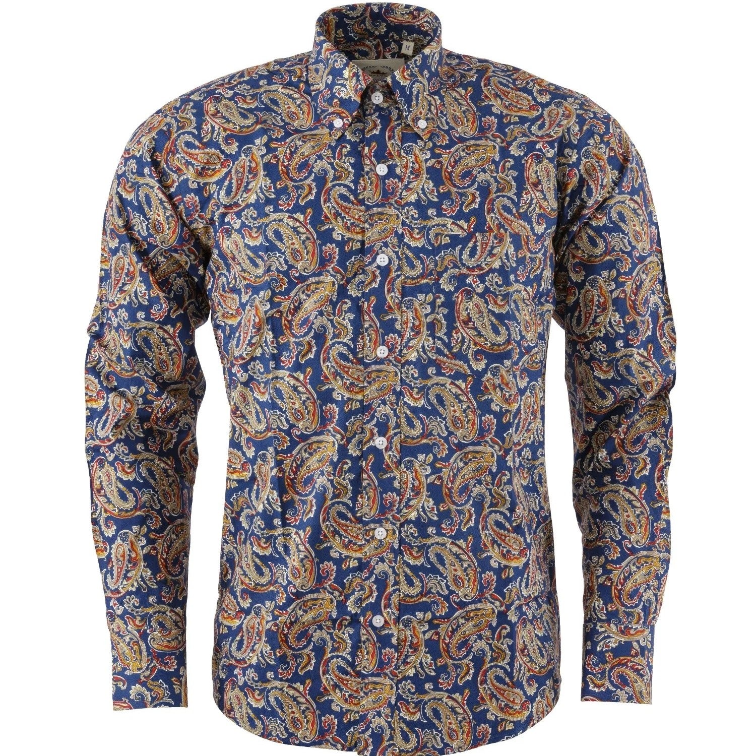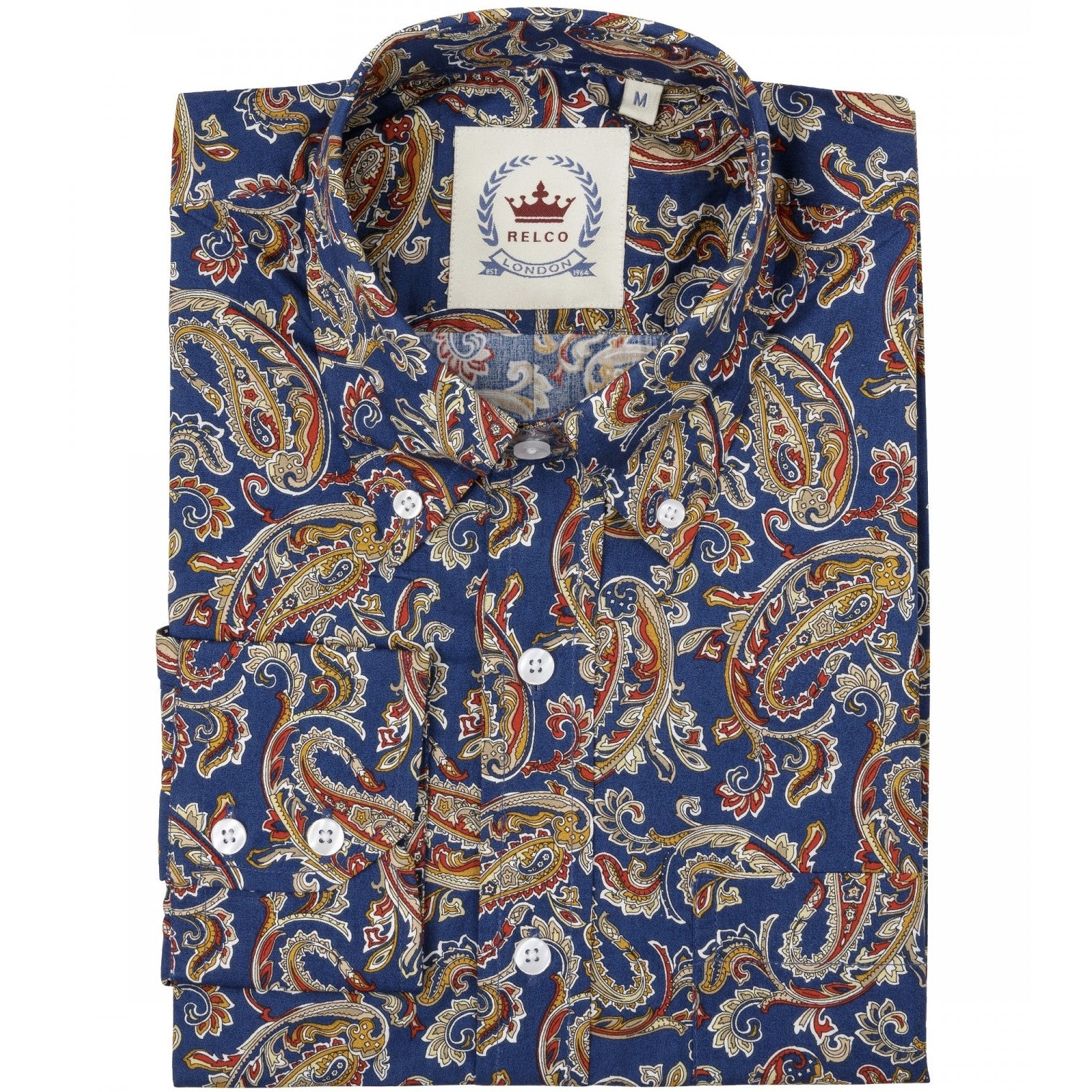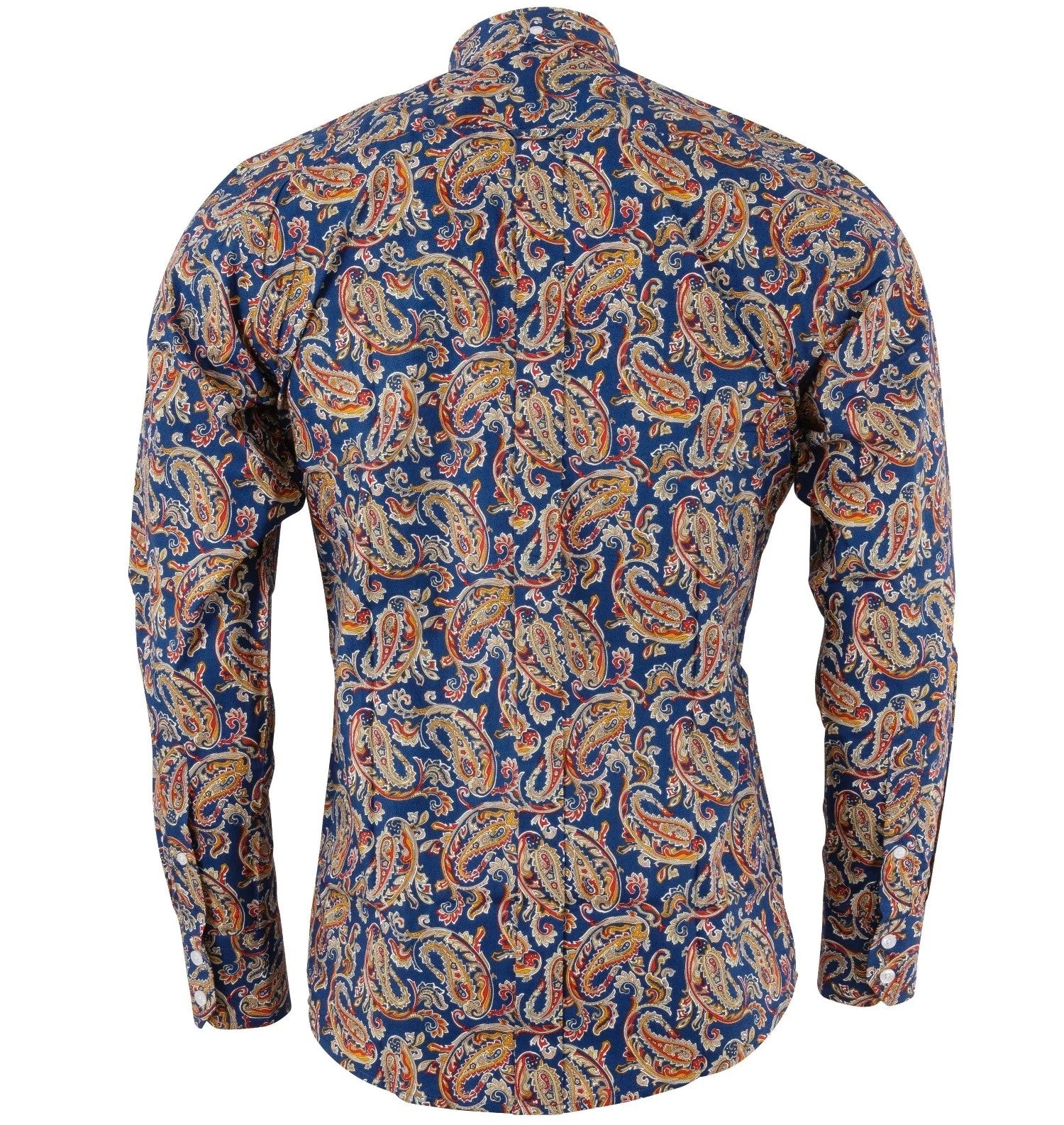 Relco Mens Long Sleeve Paisley Print Shirt Navy Blue