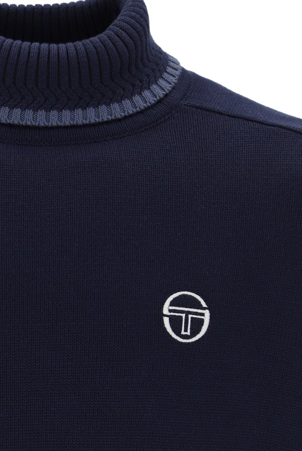 The Sergio Tacchini Caruso Roll Neck Top is a stylish knitwear piece crafted from 100% premium cotton for comfort and durability. Featuring a classic roll neck design, it is finished with ribbed detailing on the neckline, cuffs, and waistband to ensure a refined fit. The embroidered Sergio Tacchini logo adds a touch of signature branding, while the contrasting tipping enhances its sporty yet sophisticated appeal. Perfect for layering or wearing on its own, this versatile knitted top combines timeless design with contemporary flair.