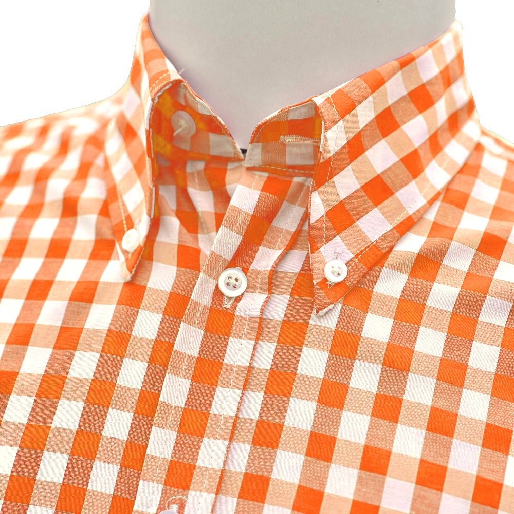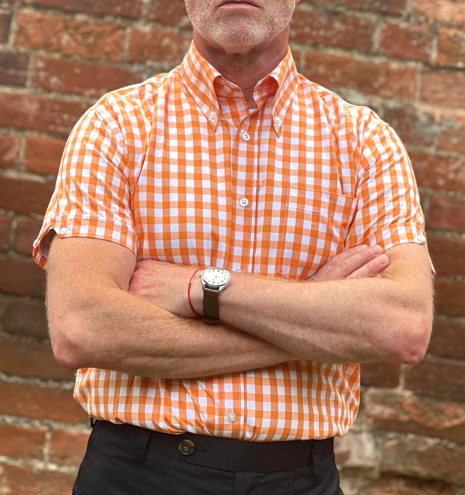Adaptor Clothing Gingham Short Sleeve Button Down Shirt Orange
