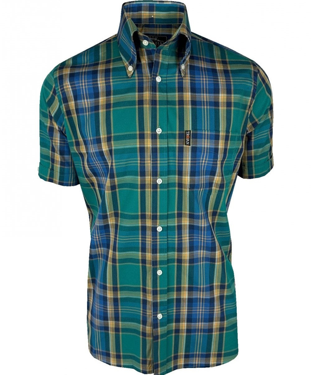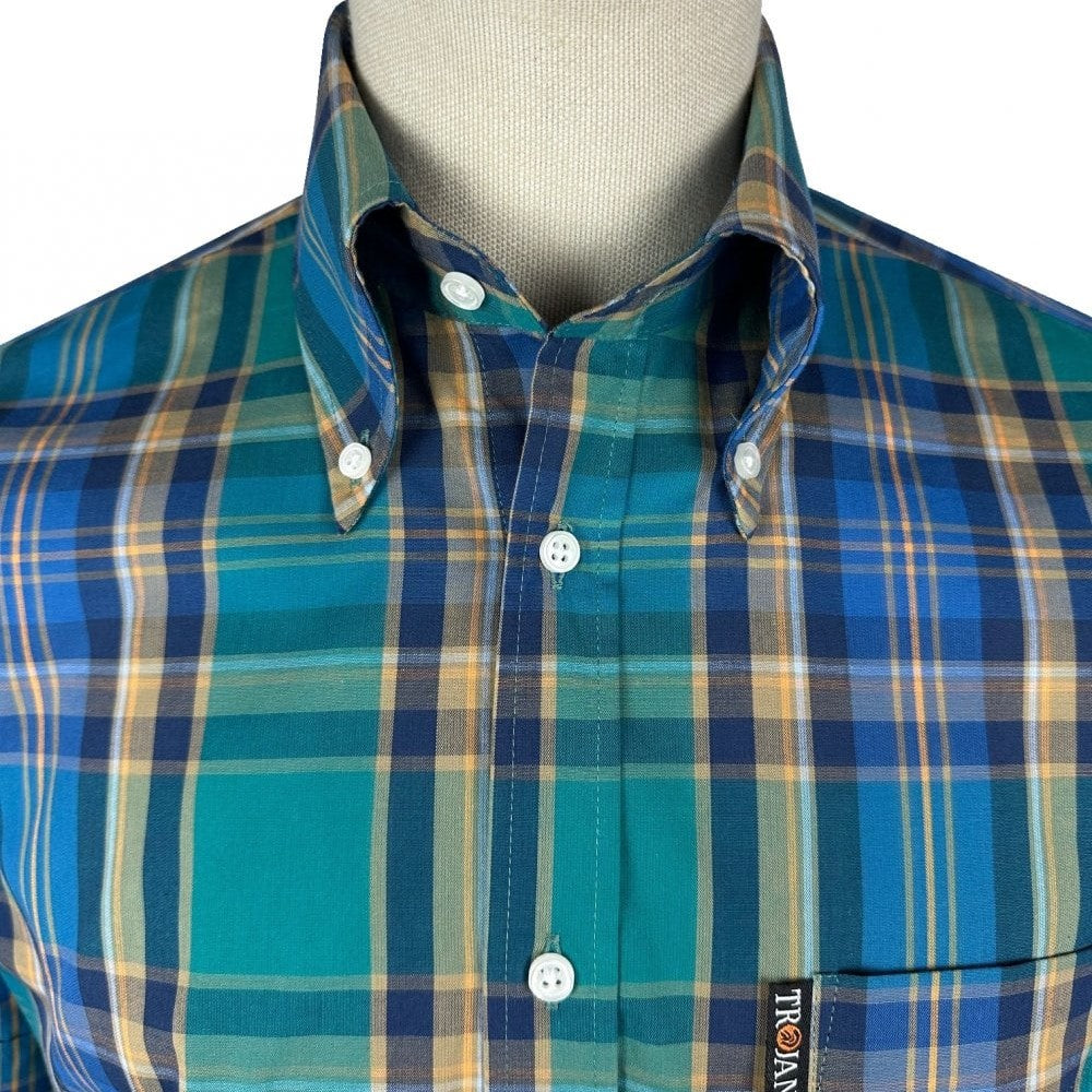 Trojan Records Multi Check Shirt With Pocket Square Jade Green