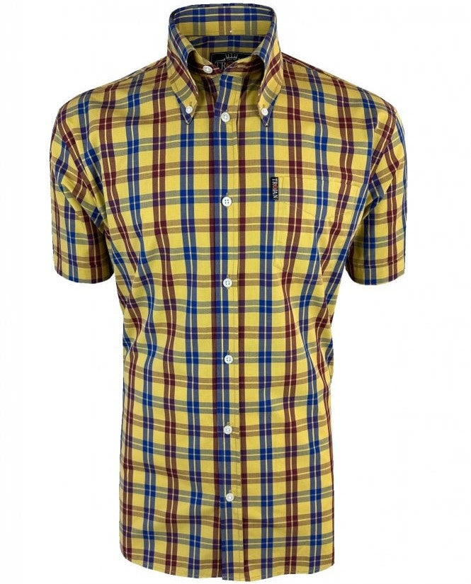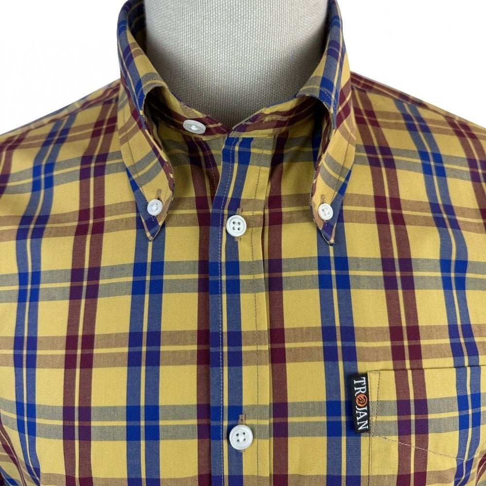 Trojan Records Windowpane Check Shirt With Pocket Square Mustard