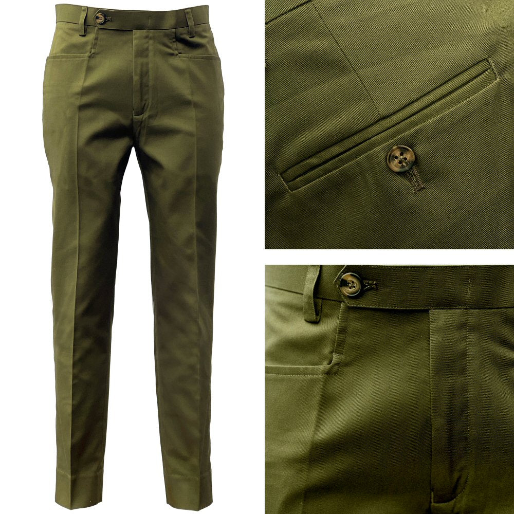 Adaptor Clothing Cotton Frogmouth Pocket Slim Trouser Olive