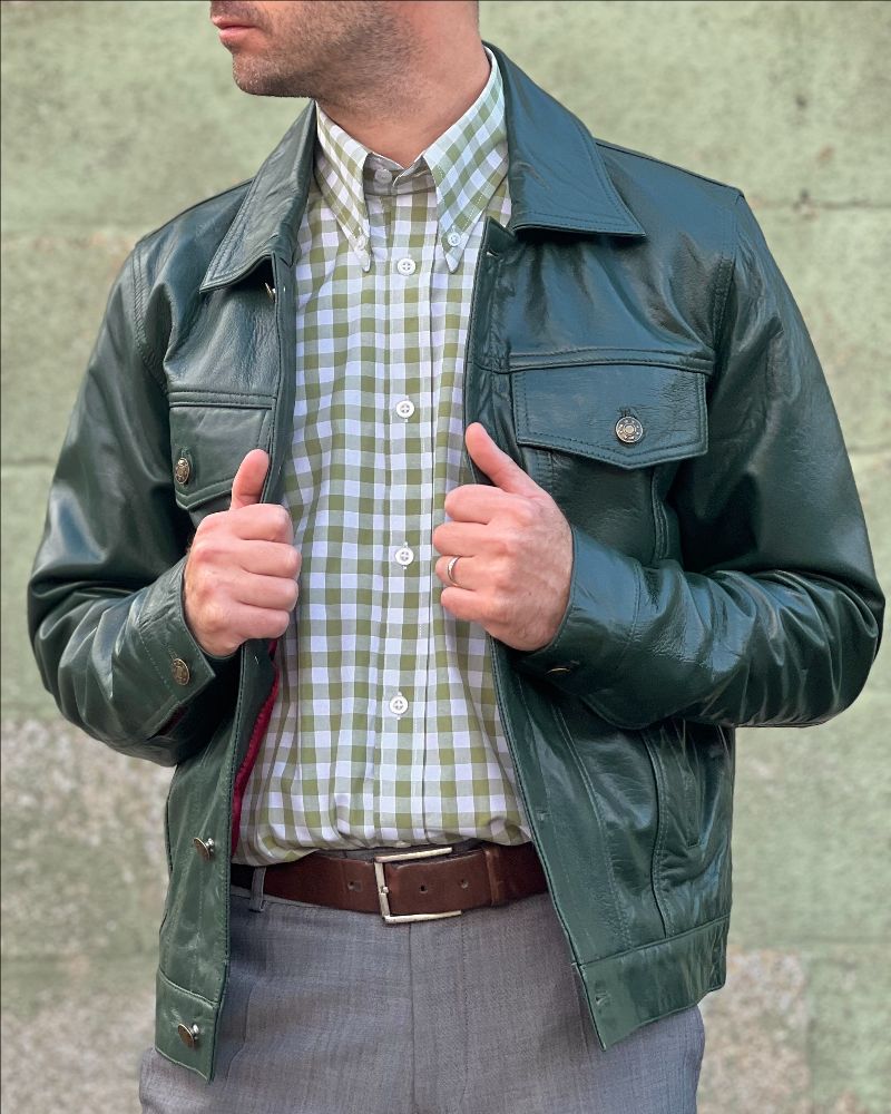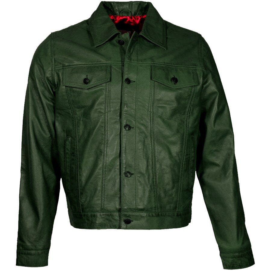 Adaptor Clothing Buttersoft Leather Trucker Jacket Bottle Green