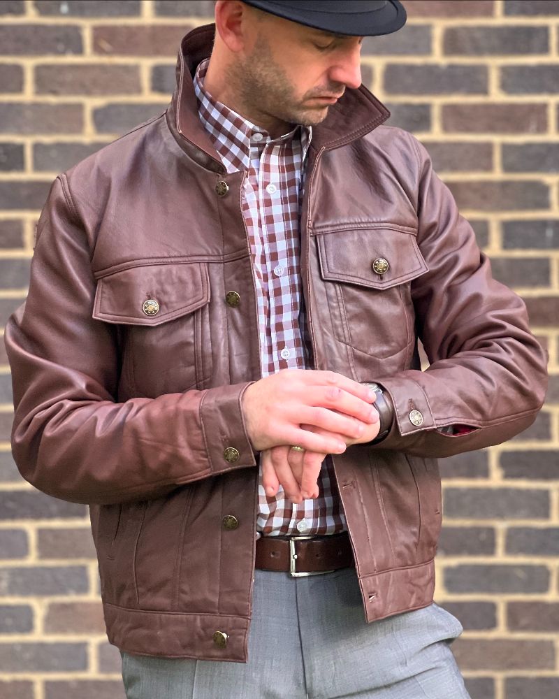 Adaptor Clothing's very own "Buttersoft" nappa leather Trucker Jacket.